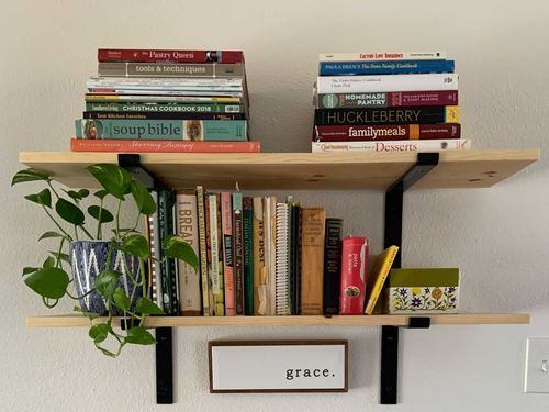 Little did I know that little grace sign would fit so perfectly under my cookbook shelves when I bought it.